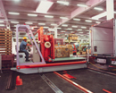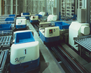 複数台の自動倉庫と周辺装置を高能力で搬送する「ループ型軌条搬送車」です。 高い処理能力で搬送処理を行います。