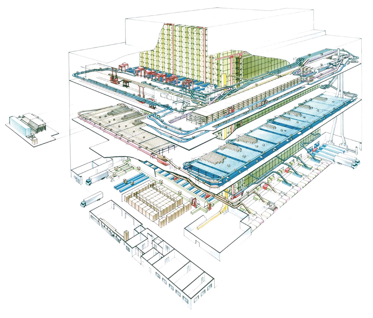 开发出高速分拣装置EE分拣系统以及转入转出方式的货箱自动仓库(RIO-S)。